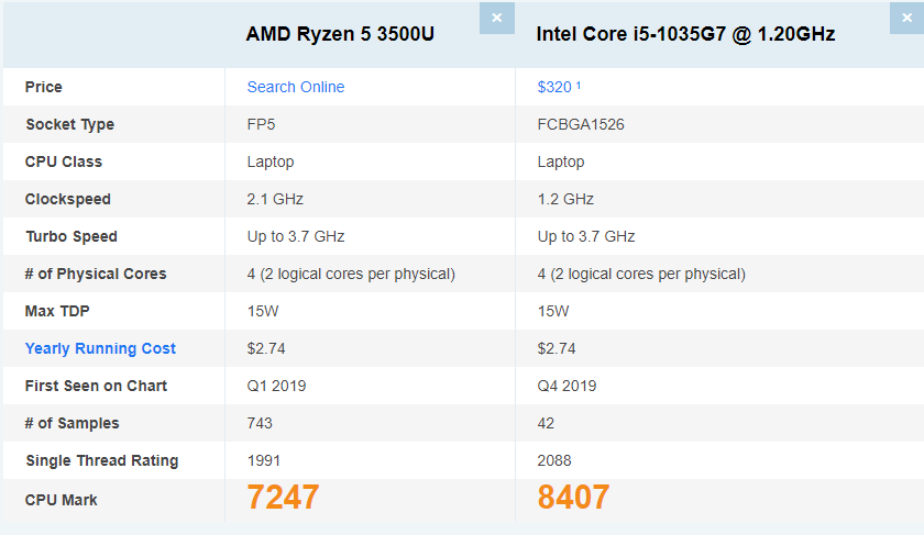 그림을 보시면 왼쪽은 현재 S340-14API에 탑재된 CPU는 AMD사의 Ryzen5 3500U이고 오른쪽은 2020년형 LG 그램에 탑재된 Intel사의 Core i5-1035G7입니다. 실제적인 벤치마크 값은 1200점가량 차이 나는 것을 확인할 수 있습니다. 하지만 AMD사의 CPU 모델을 사용해 보고 싶었고 또한 가격 대비(LG 그램 대비 3분의 1) 그리고 오피스 업무와 영상 감상용으로 쓰일 노트북에 있어이 정도 퍼포먼스의 차이는 충분히 감안할 수 있다고 생각했습니다.